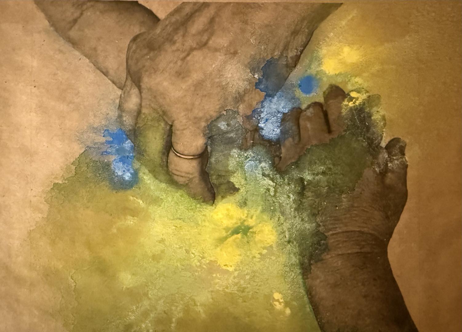 La main est relation. Elle incarne l’attention portée à l’autre, le lien, l’élan d’amour et de présence. À travers la matière, cette dimension immatérielle trouve une expression visuelle.